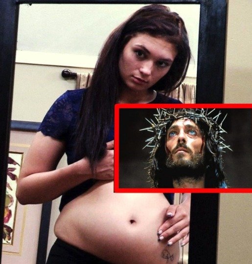 ”Sunt însărcinată în nouă lui, iar tatăl este Iisus. Ştiu că sarcina mea e reală. M-am îngrăşat cel puţin 9 kg. Dormeam noaptea şi bebeluşul meu m-a lovit în stomac şi i-am simţit capul chiar aici, lângă buric.