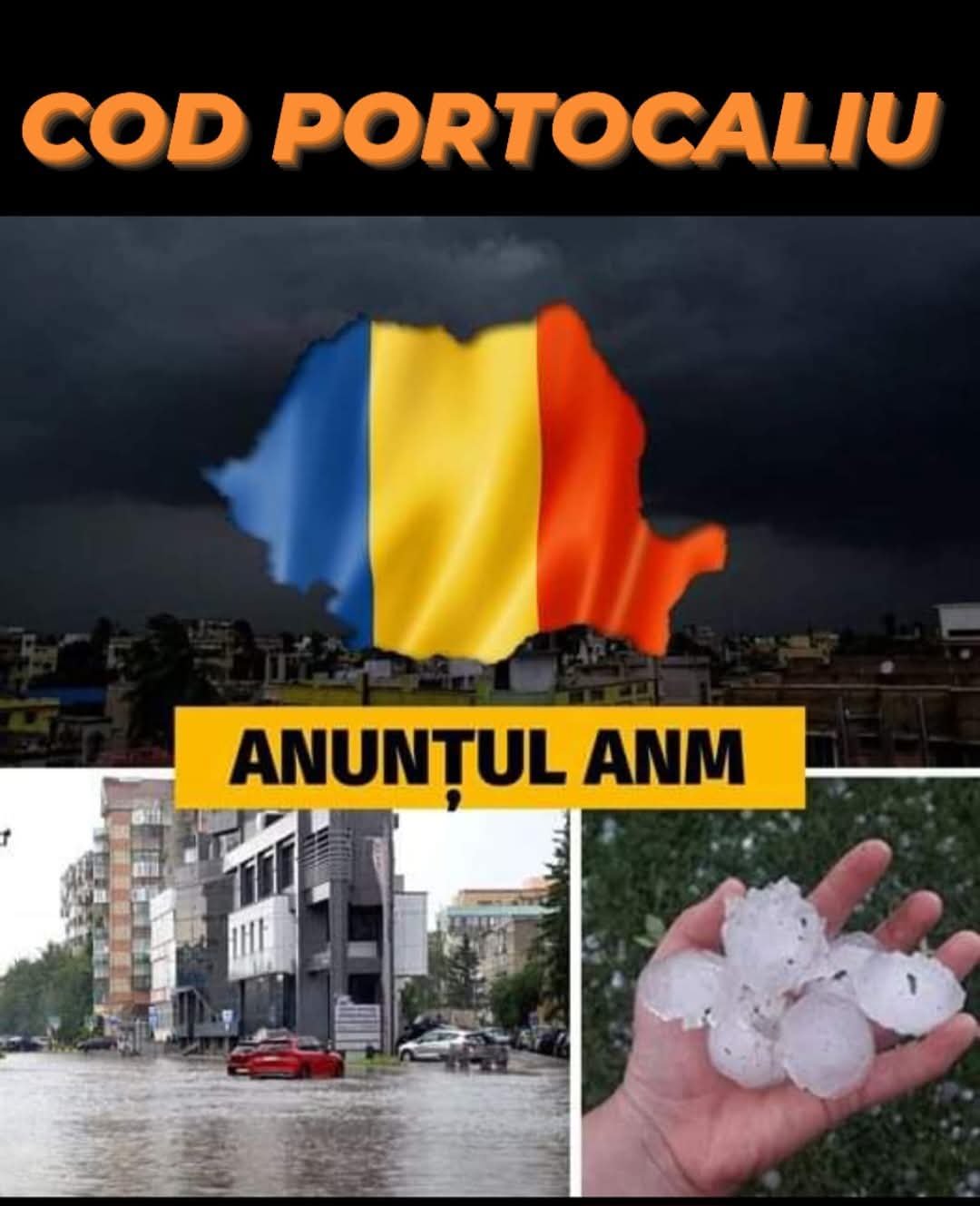 Administrația Națională de Meteorologie (ANM) a emis în această dimineață mai multe avertizări nowcasting cod portocaliu și cod galben de ploi torențiale, furtuni puternice, cu grindină și vijelii.