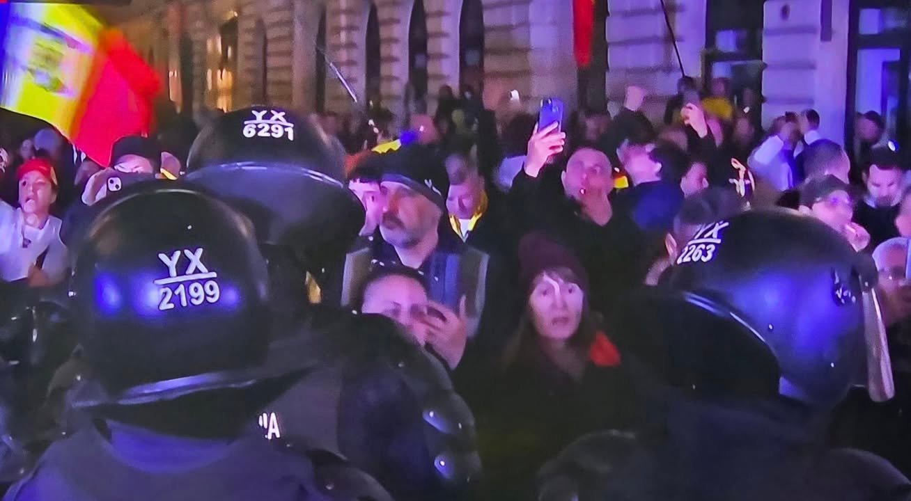 La această oră, simpatizanţii lui Călin Georgescu forţează gardurile montate de jandarmi în faţa sediului BEC şi au aruncat cu sticle în jurnalişti şi în forţele de ordine.