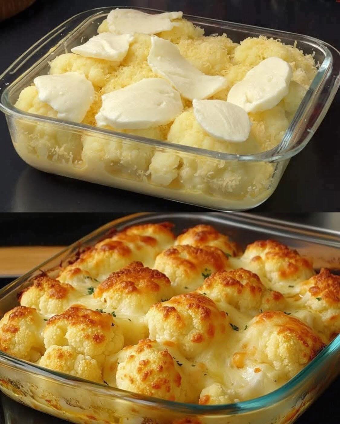 - Coaceți: Transferați conopida și amestecul cremos în vasul de copt. Asigurați-vă că este distribuit uniform.