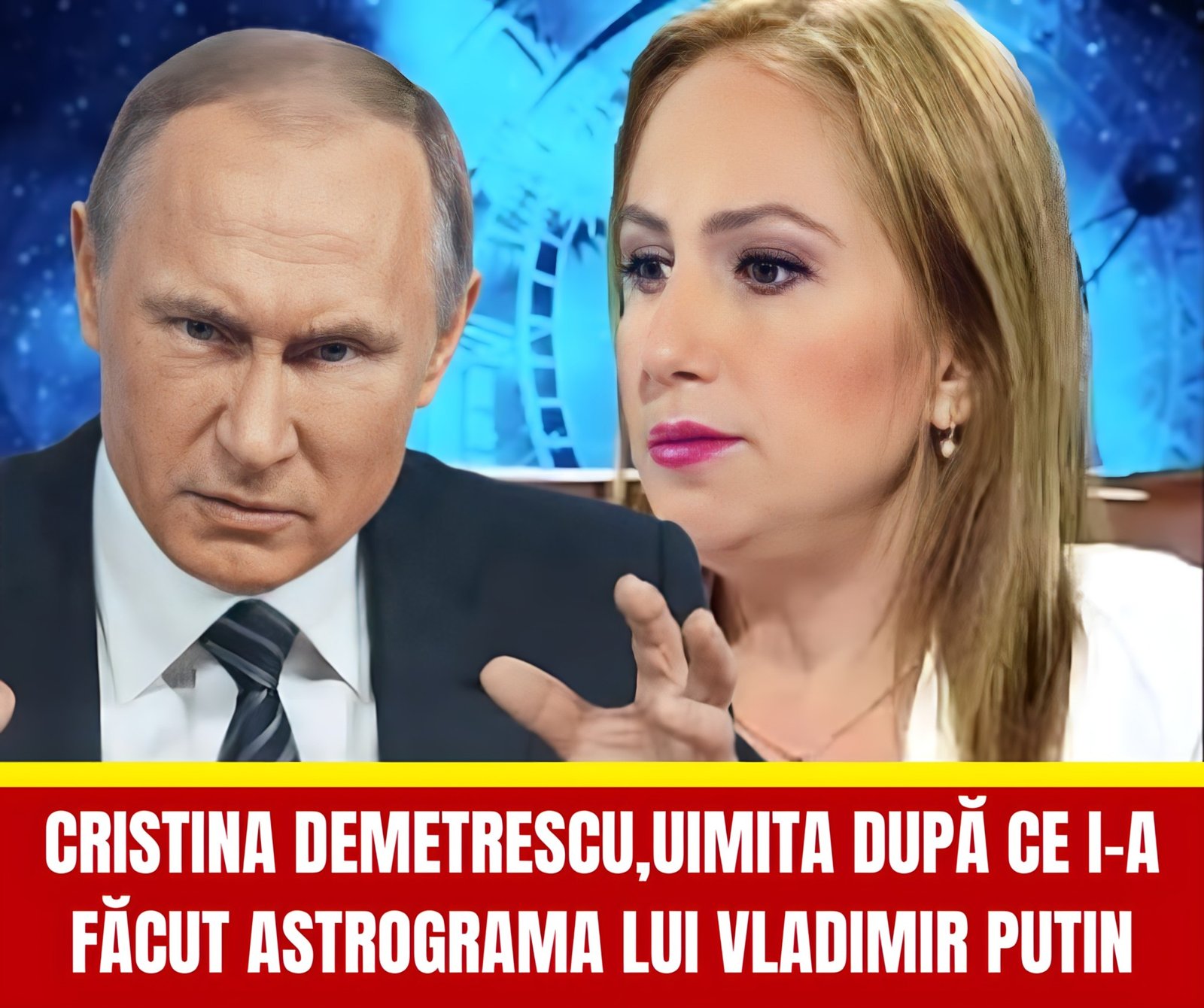 Celebra astroloagă Cristina Demetrescu a făcut declarații care au atras imediat atenția publicului, după ce a analizat astrograma liderului de la Kremlin. Potrivit acesteia, harta natală a lui Vladimir Putin este una dintre cele mai dure și tensionate pe care le-a întâlnit de-a lungul carierei sale. „Nu am mai văzut așa ceva”, ar fi spus astrologul, subliniind combinațiile astrale extrem de rare și încărcate energetic.