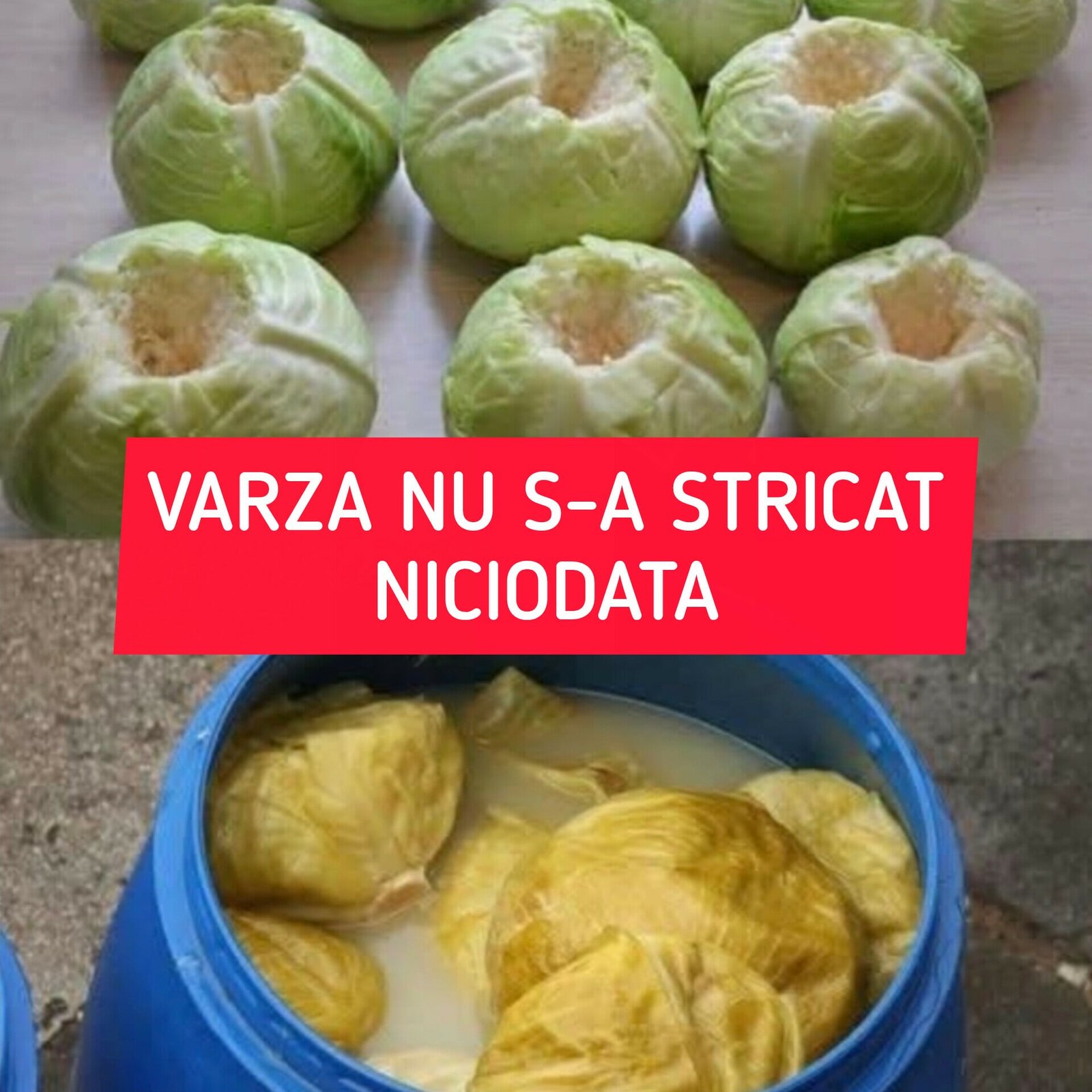 Alege varză de diferite dimensiuni, ferme și de bună calitate. Îndepărtează doar câteva frunze exterioare și impuritățile. Partea tare a cocenului (rădăcina) se taie adânc în formă de pătrat, pentru a ușura pătrunderea sării.