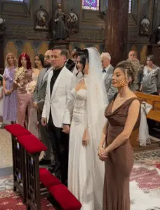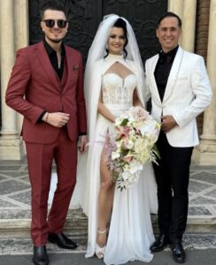 Cununia religioasă a avut loc la Catedrala Sfântul Iosif din Capitală, unde Magdalena a pășit spre altar însoțită de tatăl său. Nașii aleși pentru acest moment special au fost Anisa și Dragoș Săndulache. Rochia de mireasă, cu un design îndrăzneț ce include un decolteu și o crăpătură adâncă pe picior, a fost semnată de designerul Florin Burescu, care a împărtășit primele imagini de la ceremonie pe Instagram.