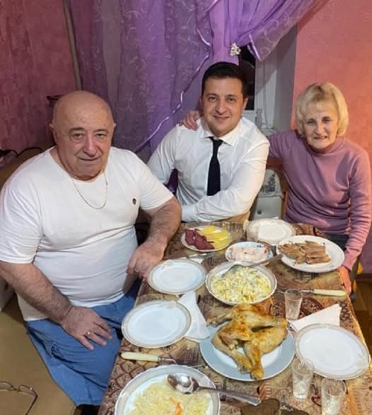 Și printre puținele imagini ajunse pe Internet cu părinții lui Zelenski este aceea în care președintele Ucrainei apare la masă cu tatăl și mama sa. Din poză, se poate observa că familia în care crescut liderul de la Kiev este una modestă.