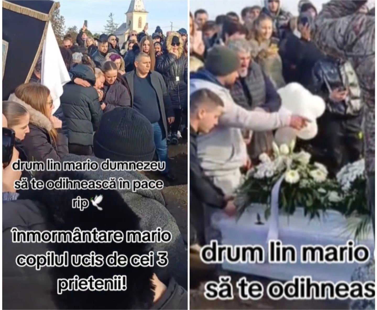 Momentul în care sicirul alb al lui Mario a fost coborât în groapă a fost sfâșietor. În timp ce preoții oficializează slujba de înmormântare, cimitirul este cutremurat de țipete și urlete înfundate de durere ai celor care îl plâng pe Mario.