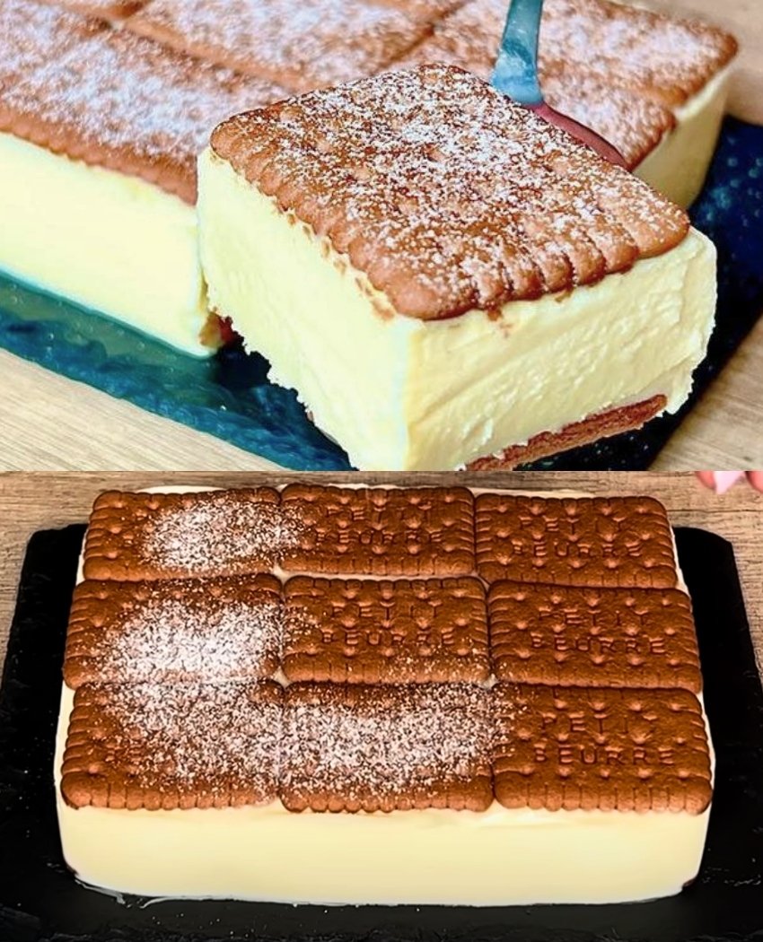 Prăjitură cu cremă de vanilie și biscuiți, fără coacere, gata în 15 minute