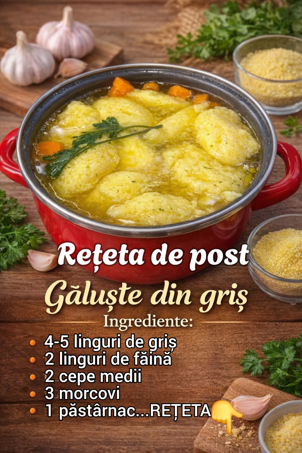 Cum prepari o supă delicioasă de găluște, fără ou sau carne. Este o rețetă de post ce se prepara ușor și repede și este foarte gustoasă.