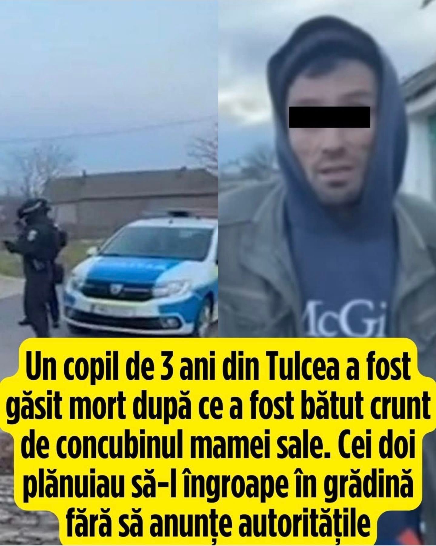 Un băiețel de 3 ani dintr-un sat din comuna Mihai Bravu din județul Tulcea a fost găsit mort pe 13 februarie 2025. Surse din cadrul anchetei arată că micuțul ar fi fost omorât în bătaie de un bărbat de 25 de ani, concubinul mamei sale. De asemenea, martorii susțin că tânărul era cunoscut pentru comportamentul violent și pentru faptul că îl lovea pe copil când avea accese de furie, în special după ce consuma alcool.